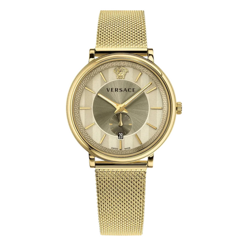 Versace V-Circle Gold Mesh Bracelet Gold Dial Quartz Watch for Gents - VBQ070017