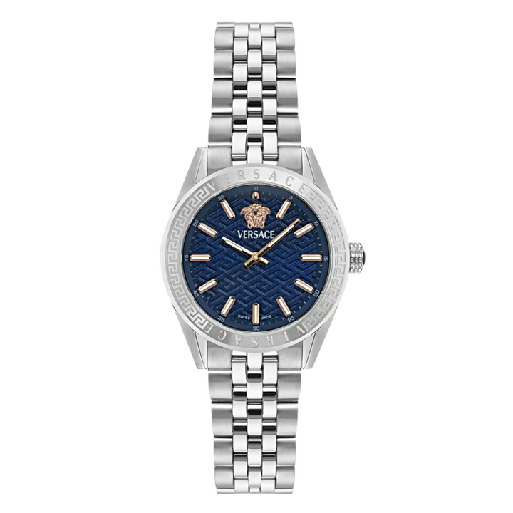 Versace V-Code Silver Stainless Steel Blue Dial Quartz Watch for Ladies - VE8I00324