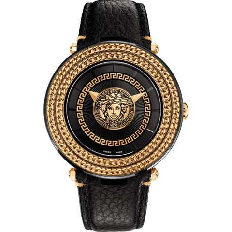 Add to WishlistVersace V-Metal Black Leather Strap Gold Dial Quartz Watch for Gents - VQL 030015