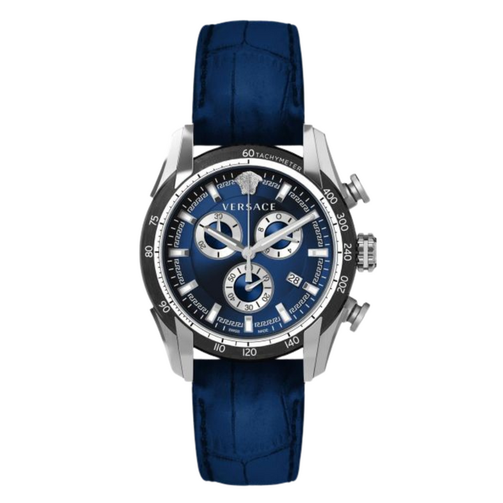 Versace V-Ray Navy Blue Leather Strap Navy Blue Dial Chronograph Quartz Watch for Gents - VE2I00721