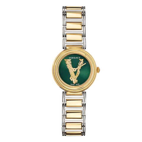 Versace Virtus Mini Duo Two-tone Stainless Steel Green Dial Quartz Watch for Ladies - VET300821